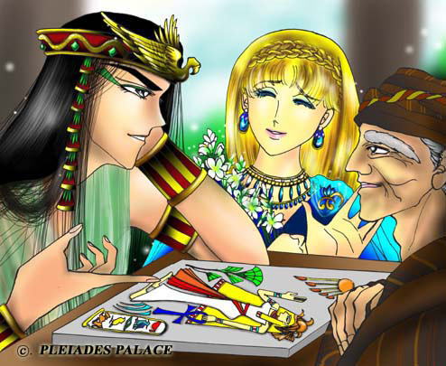ファラオ=ご機嫌、 キャロル=困惑、 職人=栄誉に感涙